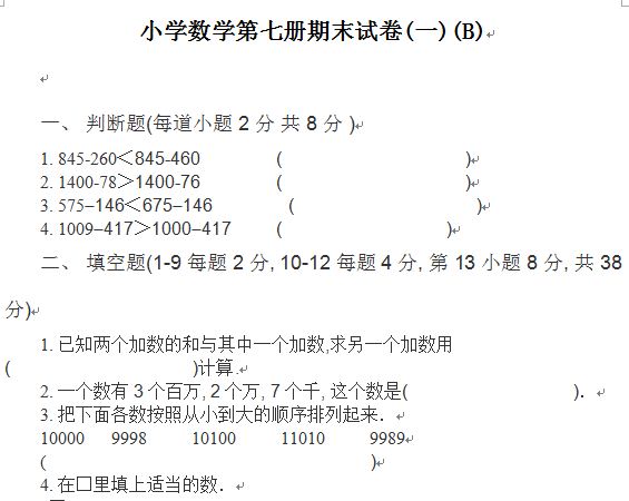 小学数学第七册期末测试(一)B