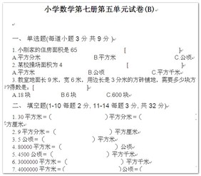 小学数学第七册第五单元测试B