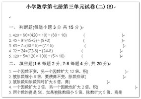 小学数学第七册第三单元测试(二)B