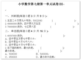 小学数学第七册第一单元测试B