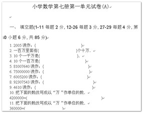 小学数学第七册第一单元测试(A)