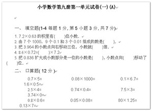 小学数学第九册第一单元测试一(A)