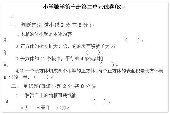 小学数学第十册第二单元测试(B)