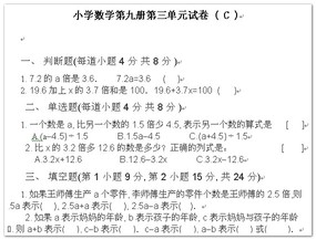 小学数学第九册第三单元测试(C)
