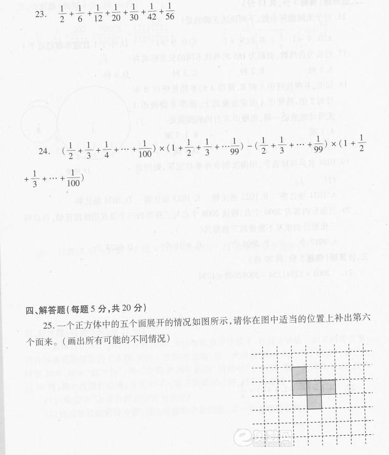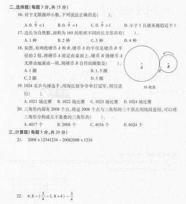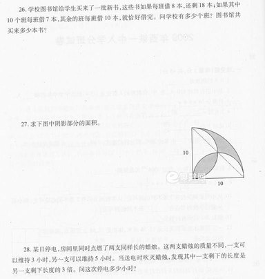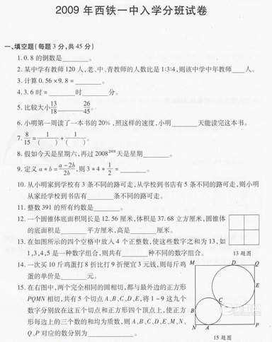 2009年西铁一中分班考试题