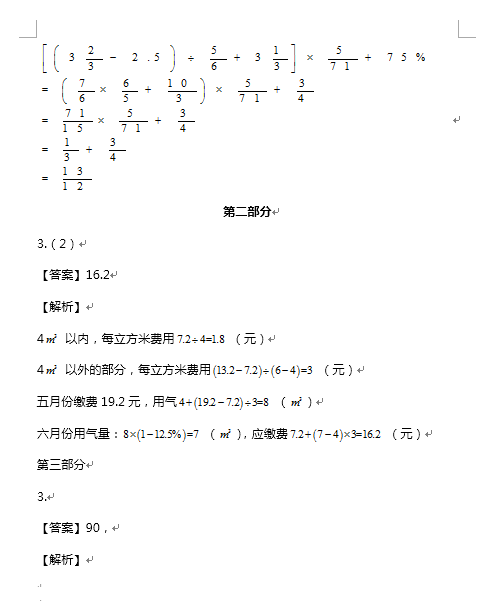 分析:今年灞桥区核心素养问卷数学内容包括6道题,分别考察的内容有:2道图形题,1道比例题,1道找规律,1道计算题,1道分段收费。图形题较难,其中第1道超出了小学知识范围,第2道需要较强的图形处理能力。其他内容比较基础,考察学生的基础知识与细心程度,比如计算题较为繁琐,需要耐心计算。找规律和比例题较为容易,是得分项。整体来说,题目难易程度区别较大,能够很好的选拔学生,想得到高分还是有一定的难度。