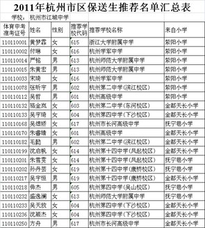 杭州江城中学2011年重点高中报送名单