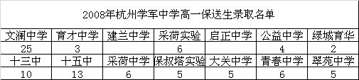 2008年,从学军中学高一保送生的录取情况看来,文澜中学和学军中学的渊源很好的体现出来,保送名额高达25名,居杭州所有初中之最。上图为杭城较好的民办初中以及公办初中保送学军中学的情况,从上图我们可以看出,民办中学除了文澜中学其他学校保送生比较少,公办中学则相比之下有保送优势。
