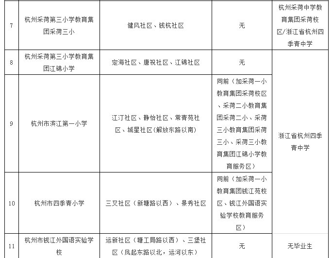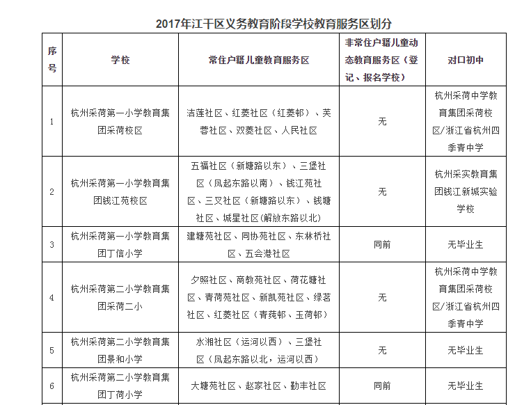 2.采荷一小教育集团采荷校区、采荷二小教育集团采荷二小的非户籍适龄儿童动态教育服务区调整为滨江一小。
