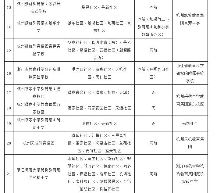 1.由于四季青街道新增2所小学,因此采荷一小教育集团钱江苑校区、景华小学的教育服务区将发生变化,两校的部分教育服务区划入采荷二小教育集团景和小学和钱江外国语实验学校的教育服务区。