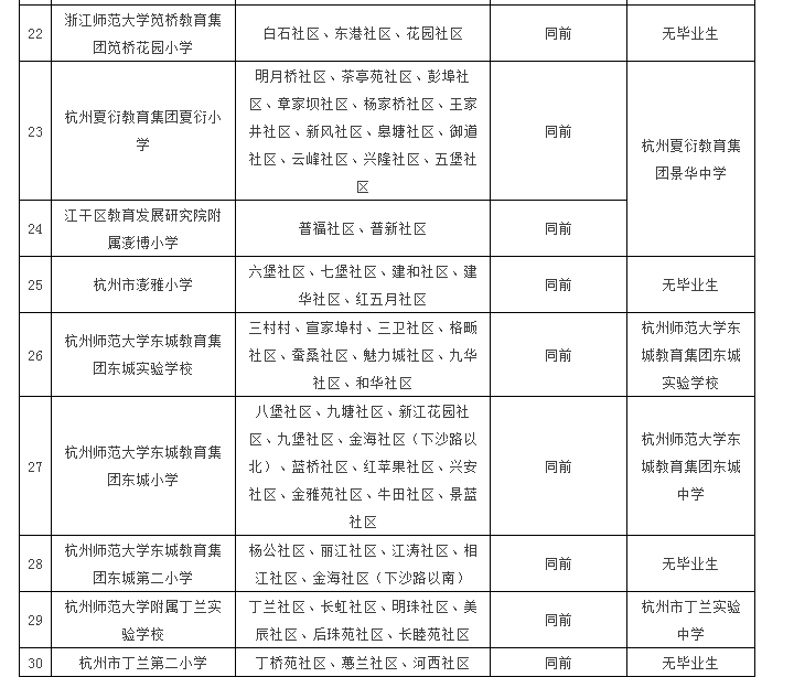 2019年杭州江干区学区划分公布