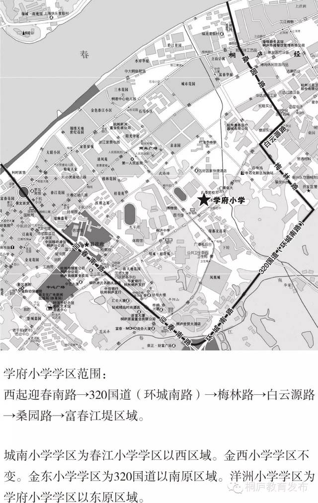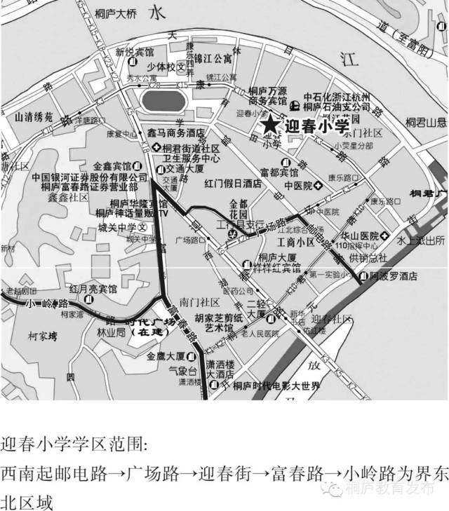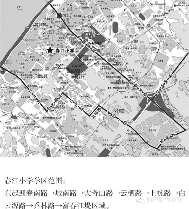 实验小学、圆通小学、迎春小学、春江小学(含完小点)、学府小学、城南小学(含完小点)、桐君小学(含完小点)、洋洲小学。