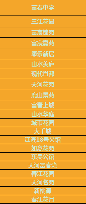 3. 富春二小:苋浦江口→苋浦江→ 孙权桥→ 孙权路→ 春秋北路→春秋南路→ 秦望路→ 江滨西大道以内区域。