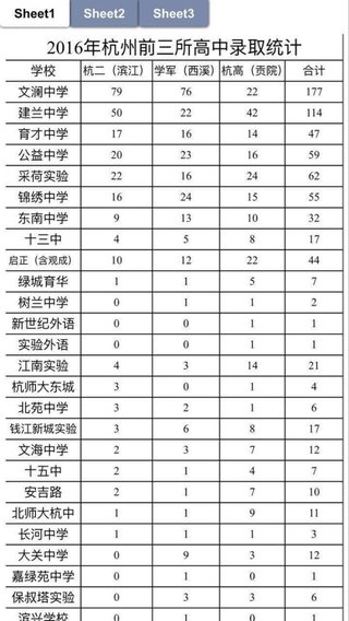 2019年杭州前三高中各初中录取人数统计