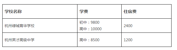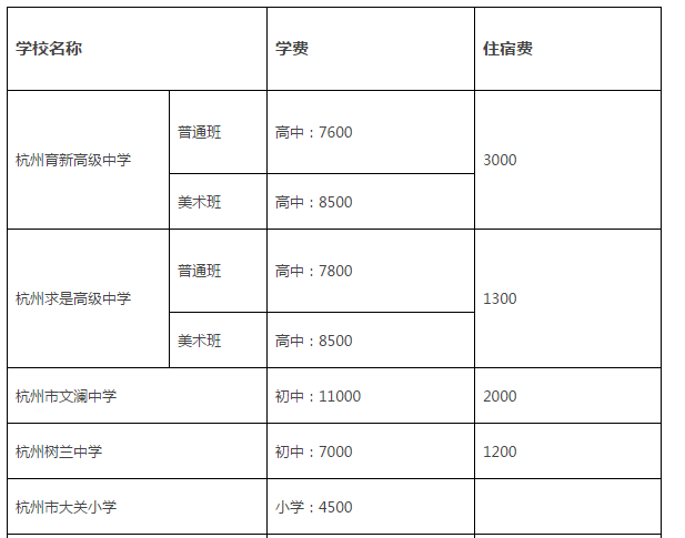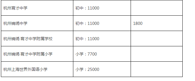 杭州主城区民办学校收费表(单位:元/生·学期)