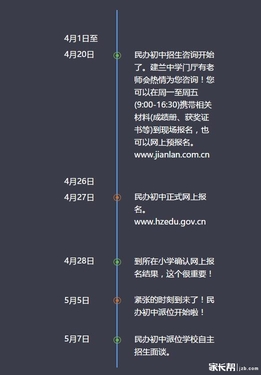 2019年建兰的招生流程中,除了官方的报名、确认、排位、面谈外,4月1—4月20都可以到建兰中学找老师当面咨询,具体时间如下(明年和以后要面对小升初的家长需要参考的时间点):