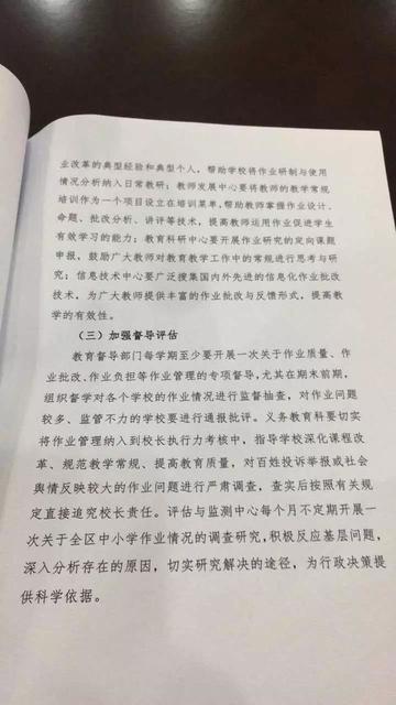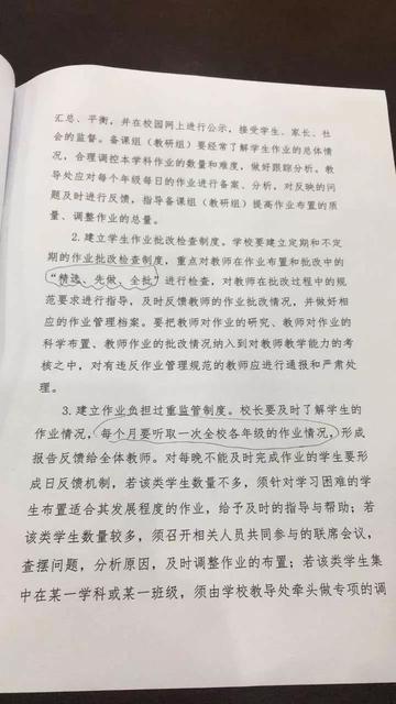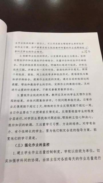 《通知》中还指出,不仅要给学生“减负”,还要落实作业的批改,强化作业监控,健全机制,切实加强作业的评估督查。