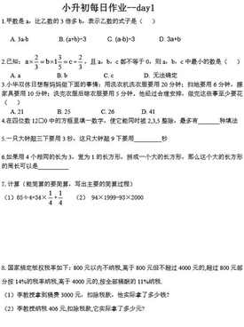 2019年杭州小升初练习培优题(一)