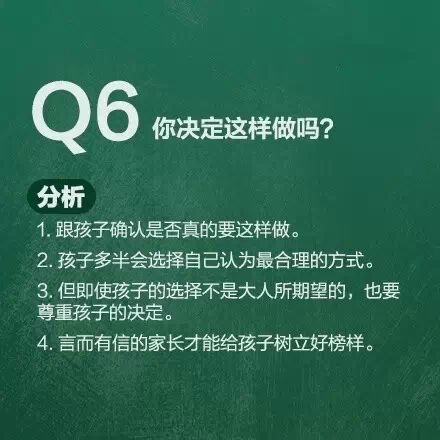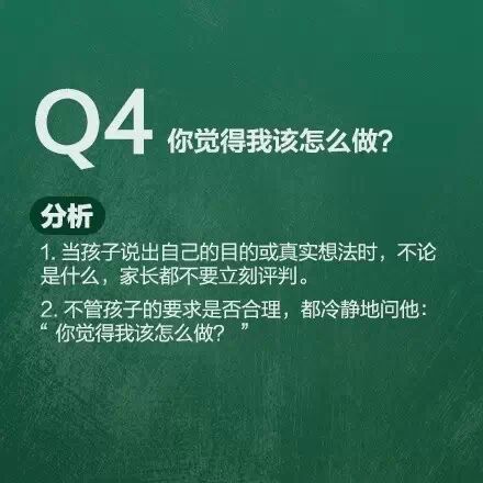 孩子犯错,家长未免动怒甚至动手,但效果往往不好。尝试先问孩子这些问题:①发生什么事情了?②你感觉如何?③你想要怎样?④你觉得我该怎么做?⑤这样做有用吗?⑥你决定这样做吗?⑦结果有没有如你所愿?⑧碰见类似情形,你会怎么做?转发!