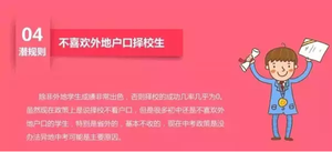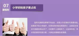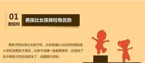 关于孩子的小升初问题,不知道有多少爸爸妈妈已经心中有数?所谓的“潜规则”亦是经验之谈,是众多亲身经历过小升初的家长所总结出来的,希望能够为您避免一些不必要的烦恼。潜规则1:男孩比女孩择校有优势。