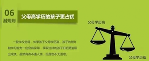 潜规则6:父母高学历的孩子更占优势。一个父母是无学历的,一个父母是高学历的,学校会选谁?