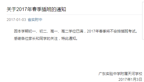 广州省实天河2019年春季插班通知
