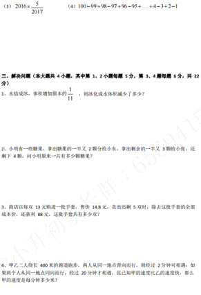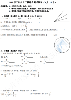 2019年广州白云广雅小升初数学卷