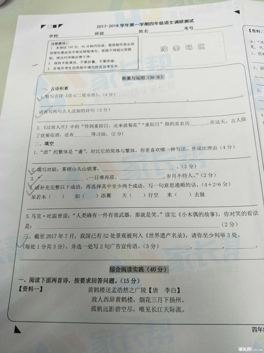 2019-2018深圳宝安区四年级上期末语文试题