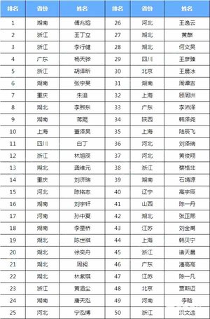 2019年全国物理竞赛总决赛前50名名单
