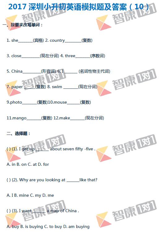 2019年深圳小升初择校备考开始了,对于深圳外国语、百外等名校的小升初考试,2019考生们要提前做好英语复习准备哦。下面是一套小升初英语模拟试卷,供2019深圳小升初考生参考。