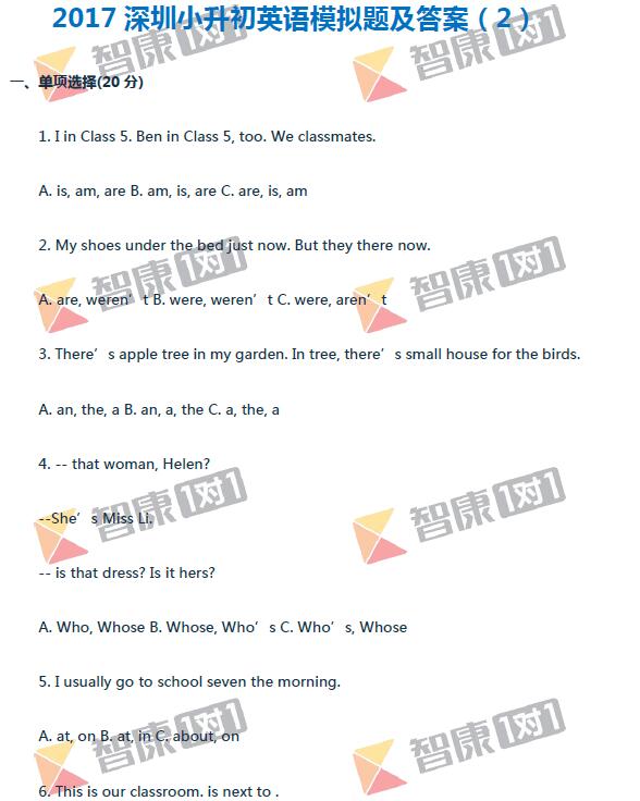 2019年深圳小升初择校备考开始了,对于深圳外国语、百外等名校的小升初考试,2019考生们要提前做好英语复习准备哦。下面是一套小升初英语模拟试卷,供2019深圳小升初考生参考。