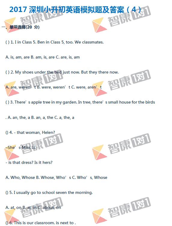 2019年深圳小升初择校备考开始了,对于深圳外国语、百外等名校的小升初考试,2019考生们要提前做好英语复习准备哦。下面是一套小升初英语模拟试卷,供2019深圳小升初考生参考。
