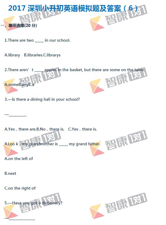 2019年深圳小升初择校备考开始了,对于深圳外国语、百外等名校的小升初考试,2019考生们要提前做好英语复习准备哦。下面是一套小升初英语模拟试卷,供2019深圳小升初考生参考。