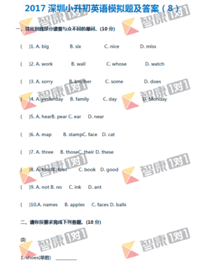 2019年深圳小升初择校备考开始了,对于深圳外国语、百外等名校的小升初考试,2019考生们要提前做好英语复习准备哦。下面是一套小升初英语模拟试卷,供2019深圳小升初考生参考。