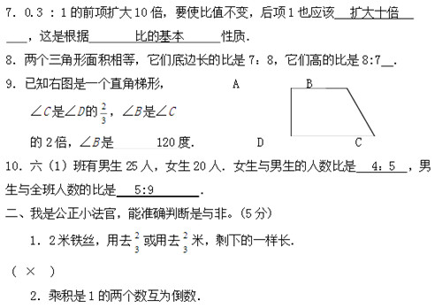 深圳奥数网:2019深圳小升初已进入准备阶段,六年级期中考也即将到来。下面为大家收集汇总了六年级数学上册期中考试卷及答案(人教版),供大家练习参考。