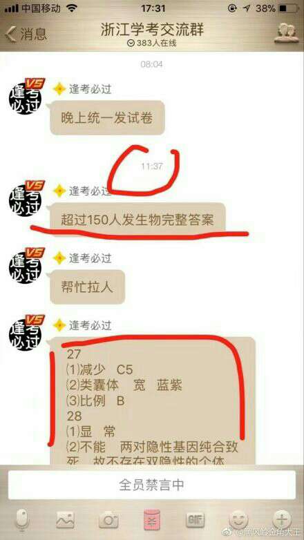 新浪教育讯4月9日,历时两天半的浙江省2018年4月学考收官。当天晚上,网友在微博爆料称,生物科目遭遇提前泄题,只需加入名为“浙江学考交流群”的QQ群,就可以买到答案。爆料:QQ群能买到真题和答案?微博网友爆料截图微博网友爆料截图引热议:几....
