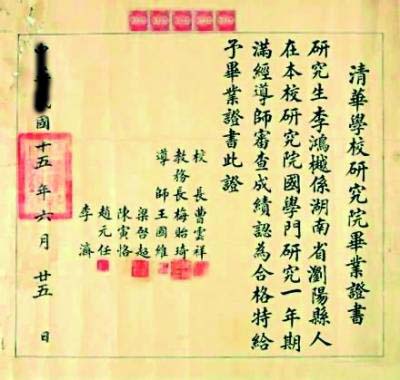 导师一栏有梁启超、王国维、陈寅恪等这两天,微博上一张民国时期的毕业证引发了大伙的强烈兴趣,有人甚至称它是“史上最牛毕业证”。毕业证的主人叫李鸿樾,“清华学校研究院”毕业,而网友之所以说这张毕业证书牛,是因为导师一栏有梁启...