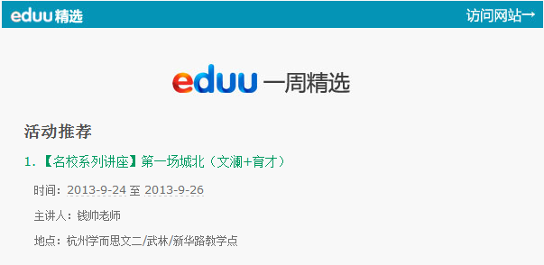 杭州奥数网杭州e度论坛《eduu精选》开始订阅啦。eduu一周精选是以升学资讯、学习资料、家长分享、公益讲座为导向的公益网络订阅。每周将以邮件方式分享杭州小升初、杭州中考重大事件和信息。适用人群:四年级~初三家长邮件内容:最近一周杭州本地的升学资讯、...