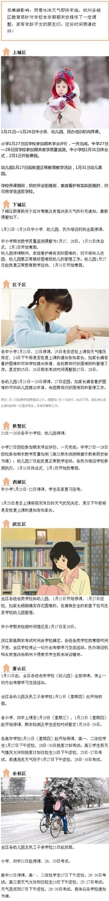杭州奥数网:受寒潮影响,雨雪冰冻天气即将来临,杭州各城区教育局针对学校本学期期末安排作了一定调整,家有学龄子女的朋友们,请收好这份时间表。