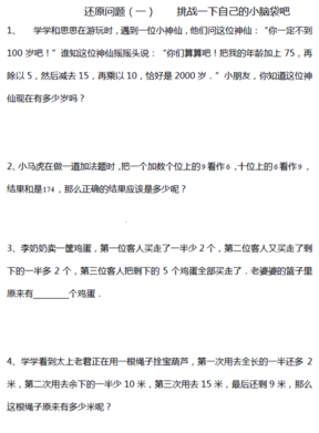 【杭州奥数网】小学数学是家长都十分关注的学科,奥数可以开拓学生的思维,小编为大家准备四年级奥数练习题,帮助孩子开拓思维。本文为:小学四年级奥数练习题及答案(五)
