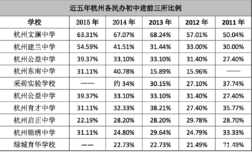 杭州奥数网:中考升学率是评定一个学校好坏的最直接标准,我们来看看杭州民办初中的升学情况,首先是进入前三所高中的比例:文澜中学一枝独秀,13年-15年比列平均超过60%,遥遥领先。其他学校,近三年平均都在30%以上。其中两个学校,一个是建兰中学,13-15....