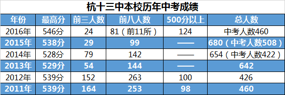 2019年杭州前三高中各初中录取人数统计