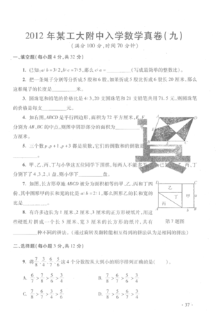 西安奥数网8月15日 小升初做真卷是一个必要的过程。充分了解目标校的命题趋势,才能更有把握。小编将2012年西工大附中的真题进行了整理。2012年西工大附中小升初入学考试数学真卷共十一套。本篇为第九套。请下载附件:2012年西工大附中入学数学真卷(九) (....