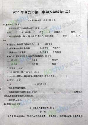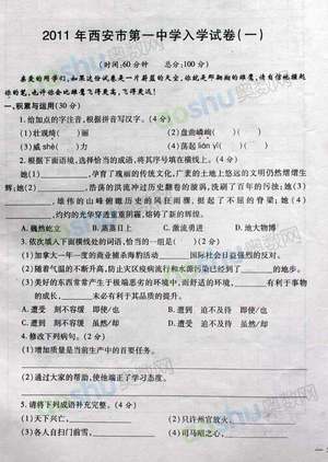 西安奥数网2月22日 小升初做真卷是一个必要的过程。充分了解目标校的命题趋势,才能更有把握。小编将2011年西安小升初西安市一中(益新中学)真题进行了整理。2011年益新中学入学考试语文真卷共二套。本篇为第二套。(最后一页有有答案和试题高清下载版) 请....