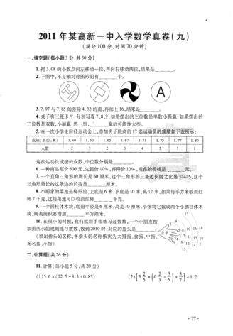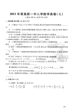 西安奥数网8月30日 小升初做真卷是一个必要的过程。充分了解目标校的命题趋势,才能更有把握。小编将2011年高新一中的真题进行了整理。2011年高新一中小升初入学考试数学真卷共十套。本篇为第七套。高清word版下载小编推荐:2019小升初高新一中526考试模拟试....