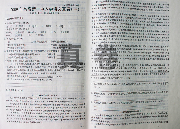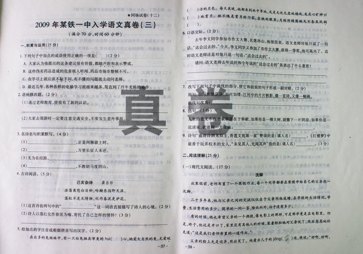 西安奥数网9月3日 小升初做真卷是一个必要的过程。充分了解目标校的命题趋势,才能更有把握。小编将2009年铁一中的真题进行了整理。2009年铁一中小升初入学考试语文真卷共三套。本套为第二套。如果有任何疑问,都可以留言给我们,或进入e度论坛-小升初版块咨....