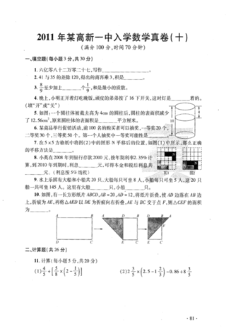 西安奥数网8月30日 小升初做真卷是一个必要的过程。充分了解目标校的命题趋势,才能更有把握。小编将2011年高新一中的真题进行了整理。2011年高新一中小升初入学考试数学真卷共十套。本篇为第十套。高清版下载小编推荐:2019小升初高新一中526考试模拟试题201...