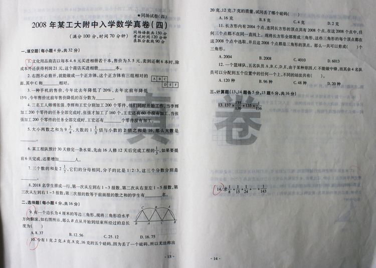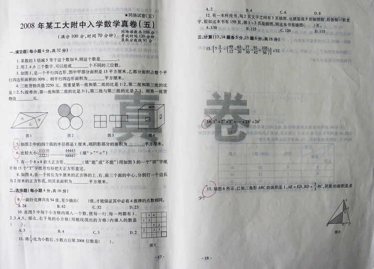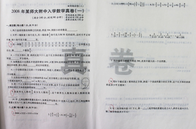 西安奥数网9月3日 小升初做真卷是一个必要的过程。充分了解目标校的命题趋势,才能更有把握。小编将2008年铁一中的真题进行了整理。2008年铁一中小升初入学考试数学真卷共三套。本套为第三套。如果有任何疑问,都可以留言给我们,或进入e度论坛-小升初版块咨....
