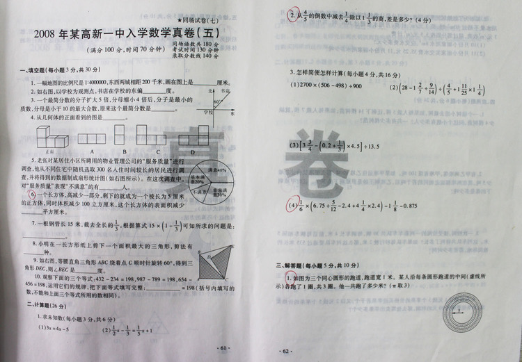 西安奥数网9月2日 小升初做真卷是一个必要的过程。充分了解目标校的命题趋势,才能更有把握。小编将2008年高新一中的真题进行了整理。2008年高新一中小升初入学考试数学真卷共二套。本篇为第一套。2008年高新一中入学数学真卷(一)(试题下载 )(答案下载)...