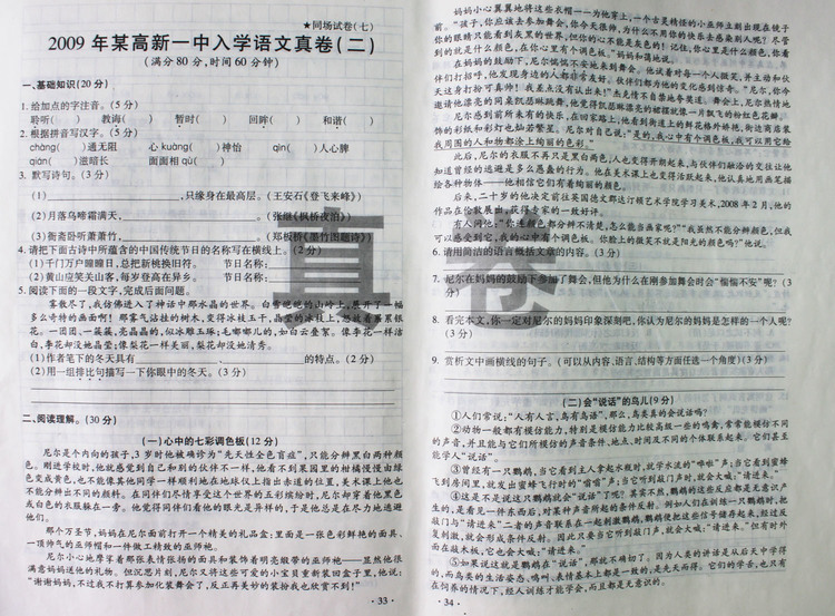 西安奥数网9月2日 小升初做真卷是一个必要的过程。充分了解目标校的命题趋势,才能更有把握。小编将2009年高新一中的真题进行了整理。2009年高新一中小升初入学考试语文真卷共三套。本篇为第三套。(温馨提示:答案在下一页下载)2009年高新一中入学语文真卷....